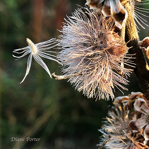 When the magenta extravaganza passes, each individual blossom gurns into a little cluster of seeds. And each seed has its own little transportation device. Like an umbrella lifting Mary Poppins right off her feet and carrying her to a new location.