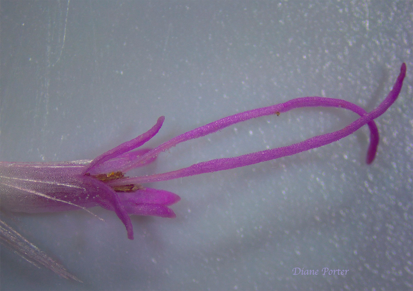 This sticky spot is called the stigma. It is primed to receive the male genetic material that is contained in the pollen.